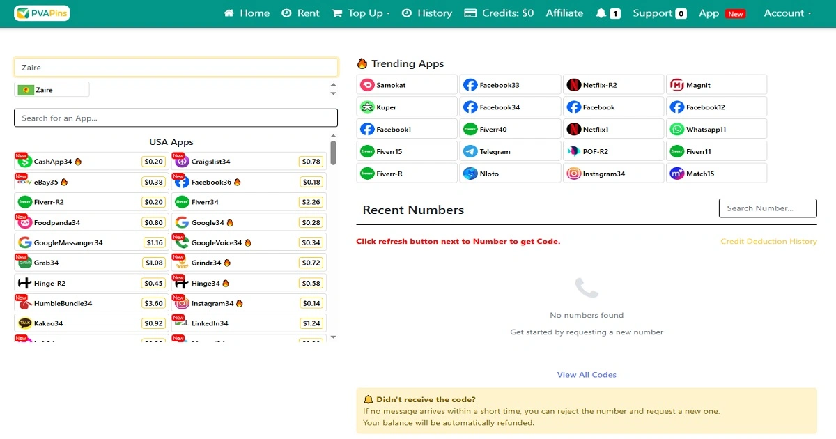 PVAPins is not affiliated with any third-party apps. Please follow each app’s terms and local regulations when verifying in the Democratic Republic of the Congo (DRC)
