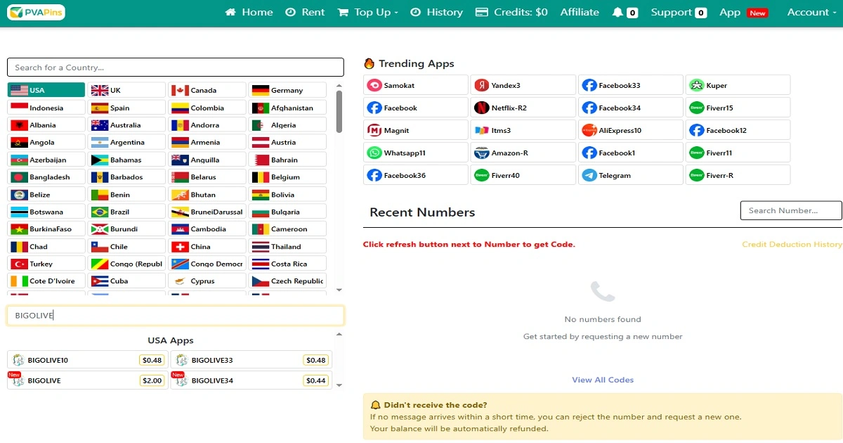 You’ll use PVAPins to get a private number that can receive SMS for BIGO LIVE OTPs. Depending on the severity of the account, you can choose a one-time activation or a longer rental.