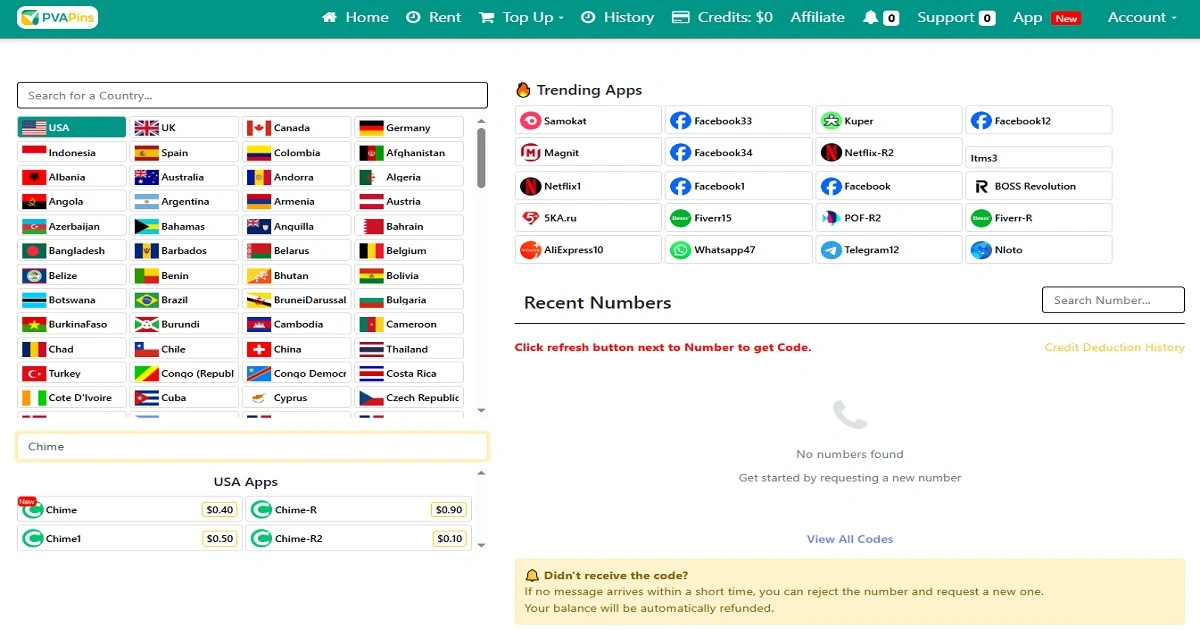 Try a quick activation to see how fast a Chime virtual phone number for verification works via PVAPins