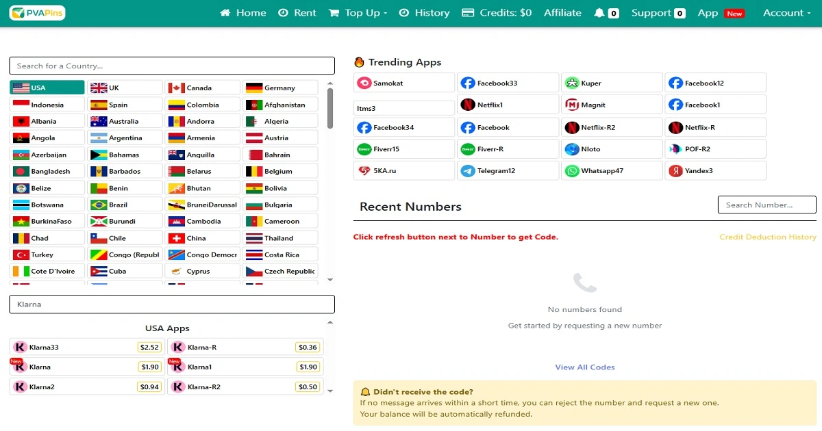 Start with a free PVAPins number → go instant if Klarna needs a cleaner route → rent a stable private line for long-term Klarna access.