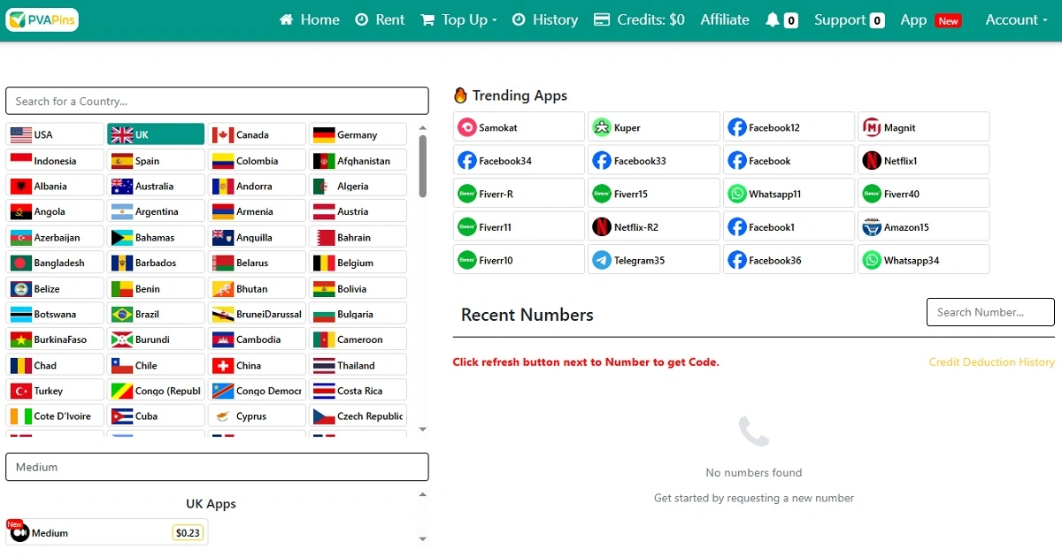 To keep your personal SIM out of Medium’s database, you need a real but virtual number that can receive SMS online. PVAPins gives you precisely that: you choose a country, select Medium as the service, get a number, and pull the OTP straight from your PVAPins account.