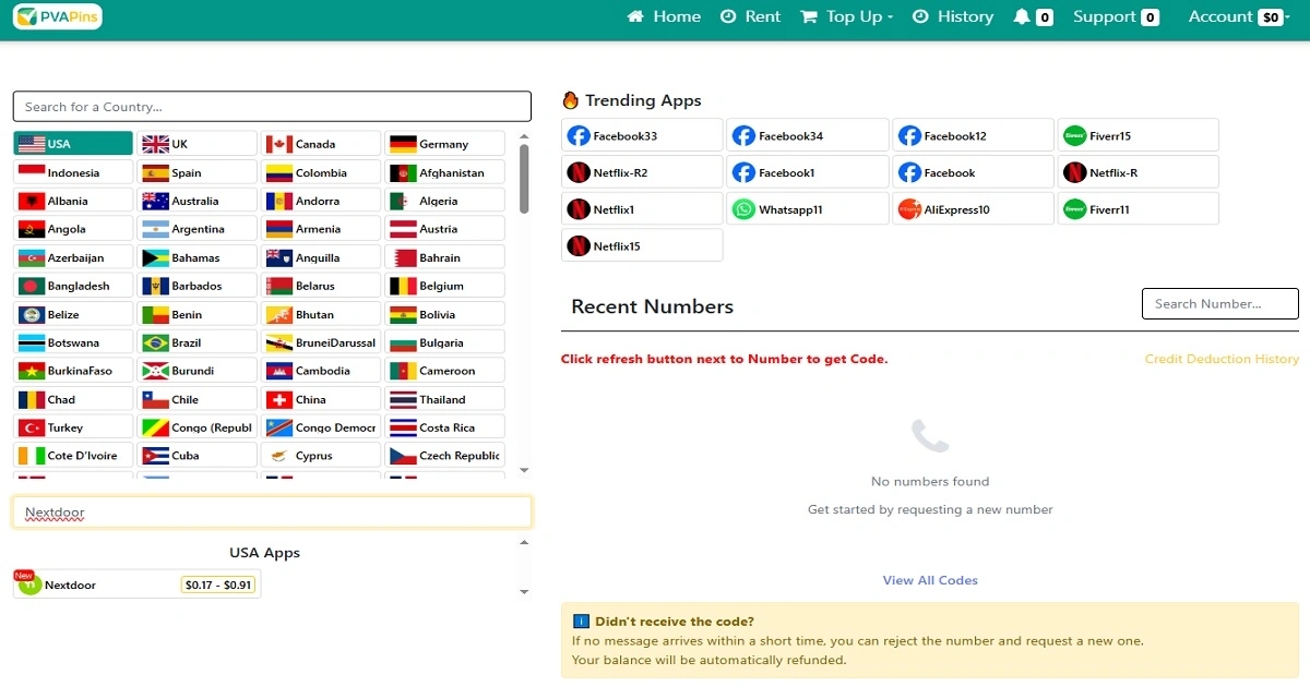 PVAPins supports 200+ countries, which is great if you’re traveling, relocating, or don’t want your personal SIM involved.
