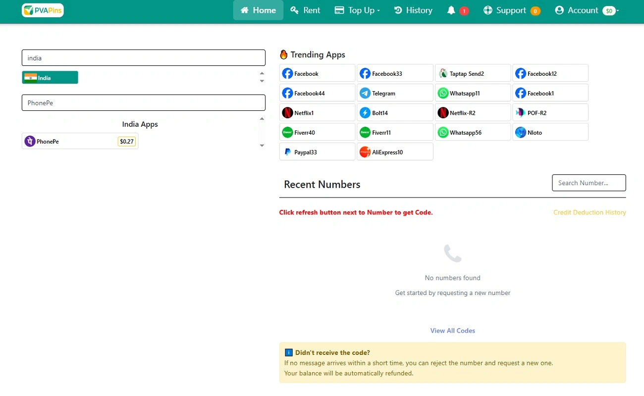 For banking/UPI apps, a virtual number often won’t replace the bank-registered SIM (and you should follow the app’s rules). But for everyday signups where you want privacy and fast OTP delivery, PVAPins can be a clean option: test with free virtual numbers, then move to instant activations or rentals when you need stability.