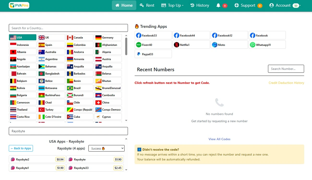 If Rayobyte asks for a phone number and you don’t want to use your personal SIM, PVAPins lets you verify using a separate number with fast OTP delivery and coverage across 200+ countries.